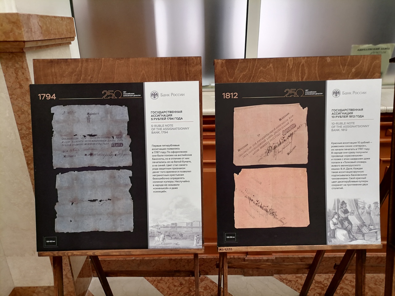 Выставка «250 лет российским бумажным деньгам» связана с юбилейной датой изготовления первых российских ассигнаций.