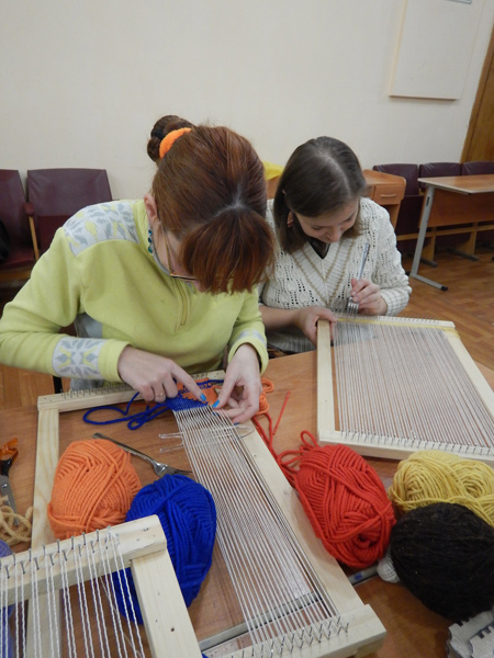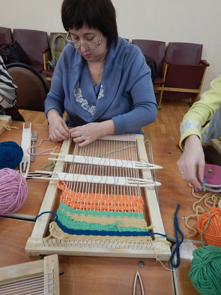 Под чутким руководством Арины Шахтариной, члена военно-исторического клуба «Легенда», ткача с более чем десятилетним стажем, гости освоили основные приемы ткачества на раме и соткали по небольшому изделию.
