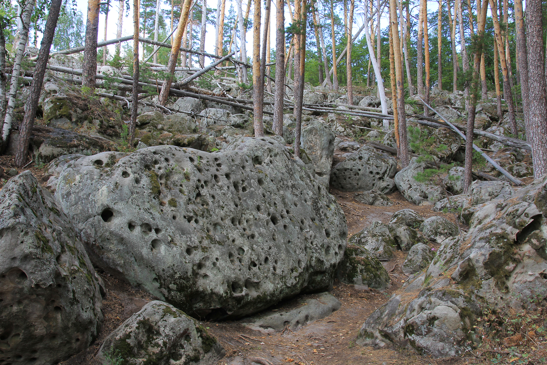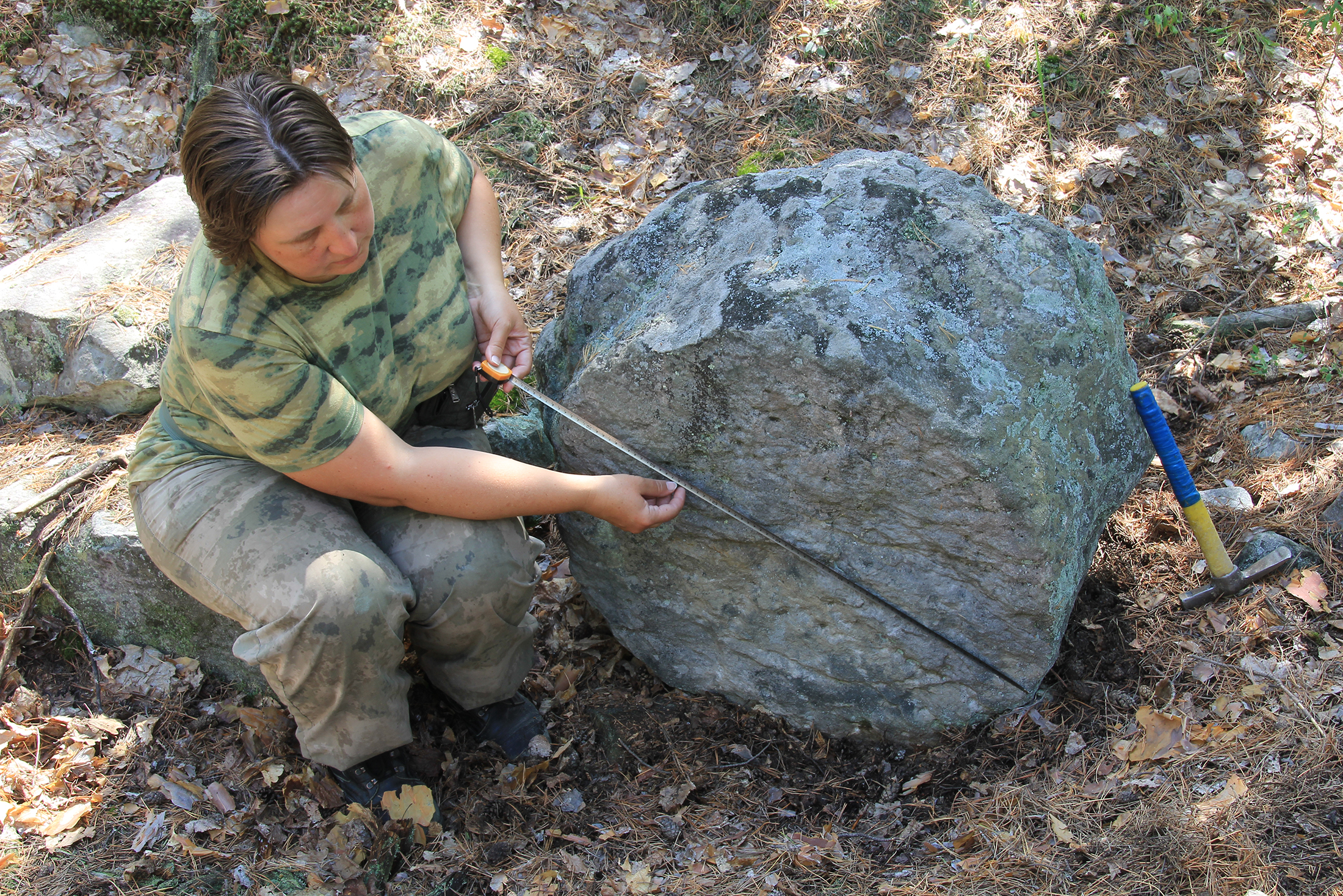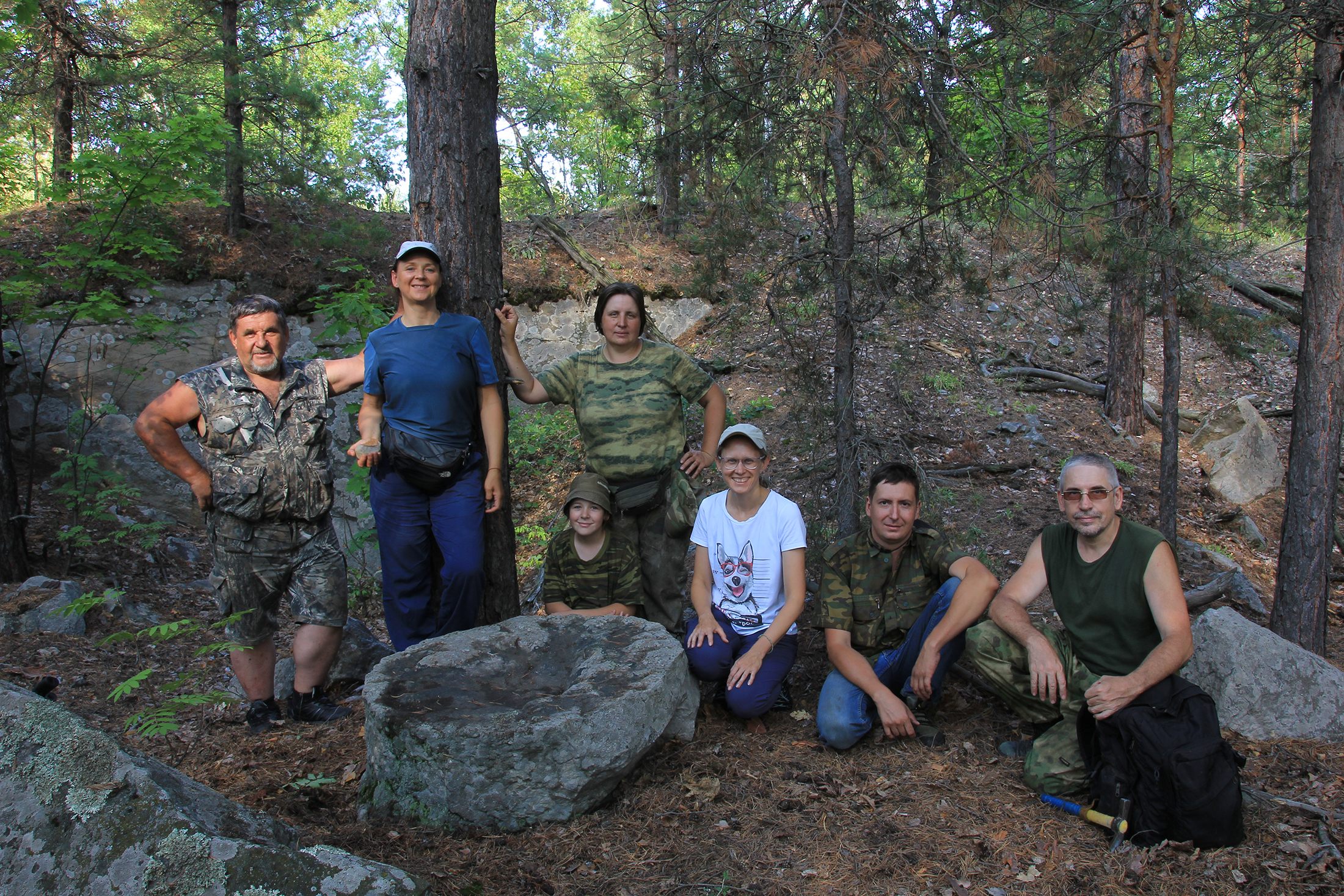 Продолжено изучение промыслов Сызранского района по изготовлению жерновов и добычи песчаника. В окрестностях пос. Гремячий осмотрены объекты горной добычи прежних лет – участки, где добывали бутовый камень и изготавливали жернова для мельниц. Найдены новые экземпляры заготовок под жернова. Продолжено обследование штольни «Киль-Кереметь» (открыта самарскими спелеологами в 2011 г.). Проведена расчистка заваленного входа. Штольня представляет небольшую подземную выработку, часть стен которой выложена бутовым камнем (забутовка). В ходе изучения склонов северных участков Малоусинской возвышенности (окрестности урочища Оклино) Ю.М. Трофимов показал открытый им несколько лет назад крупнейший комплекс по производству жерновов. Масштабы выработок поражают своим размахом. На месте каменоломен сохранились заготовки жерновов разной стадии обработки. Также Ю.М. Трофимов провёл экскурсию по малоизвестным участкам эрозионных останцов палеогеновых песчаников и показал открытое им ранее новое местонахождение ископаемой фауны моллюсков.