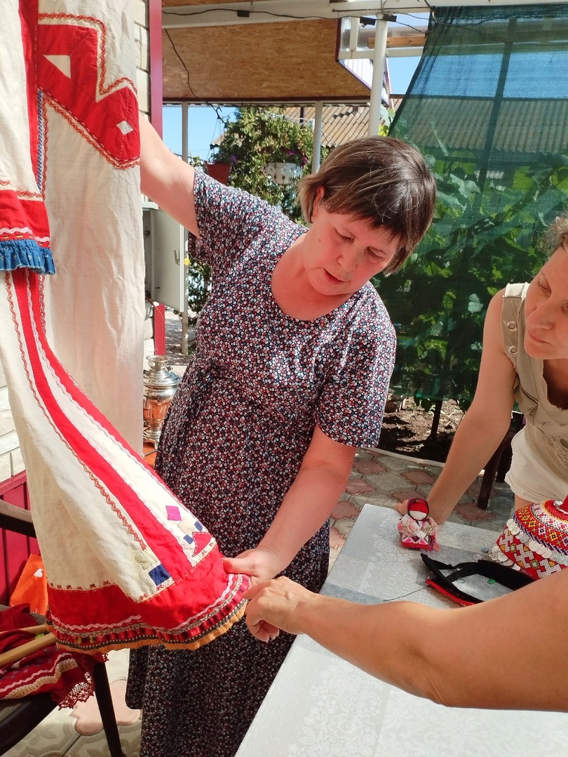 Жительница чувашского села Старая Таволжанка Яковлева Ирина Александровна поделилась информацией, раскрывающей историю села, традиции чувашской культуры, сохраняющиеся в селе, особенности местных праздников. Рассказала о специфике свадебного ритуала, проводимого во время её замужества. Также Ирина Александровна показала элементы традиционного чувашского костюма, которые она хранит дома и предметы декоративно-прикладного искусства, изготовленные ею в технике бисероплетение.