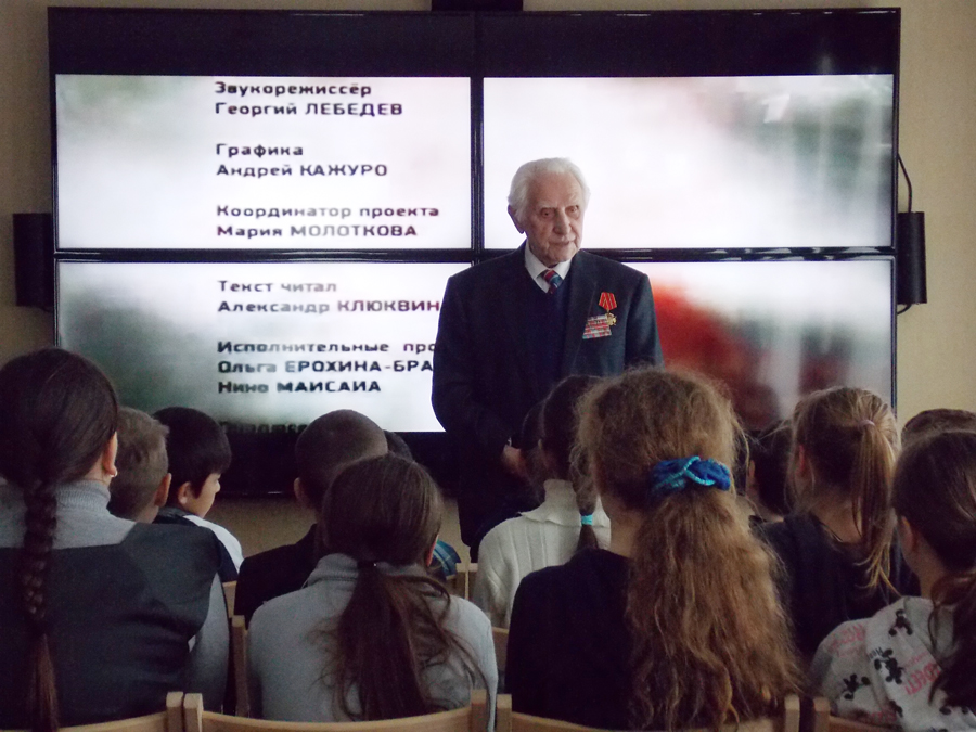 По окончании фильма перед юными посетителями музея выступил ветеран Великой Отечественной войны (1941-1945 гг.), председатель общественного совета Дома–музея В.И. Ленина, – Александр Владимирович Любимов, который рассказал о детях военного времени, принимавших участие в боевых действиях.