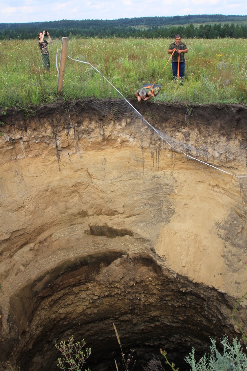 В окрестностях с. Скрипино осмотрен интересный геоморфологический объект, известный под названием «Провал». Необычный для нашего региона пример геологических процессов. Представляет собой вертикальную яму почти круглого сечения (7,9х8,4 м) с отвесными стенками, глубина «колодца» 26 м. Образовался несколько лет назад и является следствием карстовых процессов, происходящих в нижележащих меловых породах. Сходный объект есть в окрестностях пос. Передовой Сызранского района – карстовая воронка диаметром более 10 м https://www.alabin.ru/sobytiya/ekspeditsiya-otdela-prirody-po-monitoringu-prirody-syzranskogo-i-shigonskogo-rayonov/