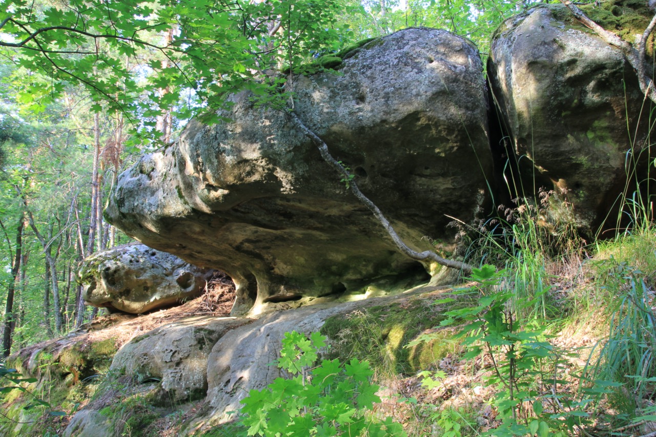 В ходе изучения склонов северо-восточных участков Малоусинской возвышенности в окрестности урочища «Вислый камень» (Каменный мост) Ю.М. Трофимов показал комплексы малоисследованных эрозионных останцов палеогеновых песчаников. На ручье Гремячем осмотрен небольшой водопад, высотою 1,3 м.