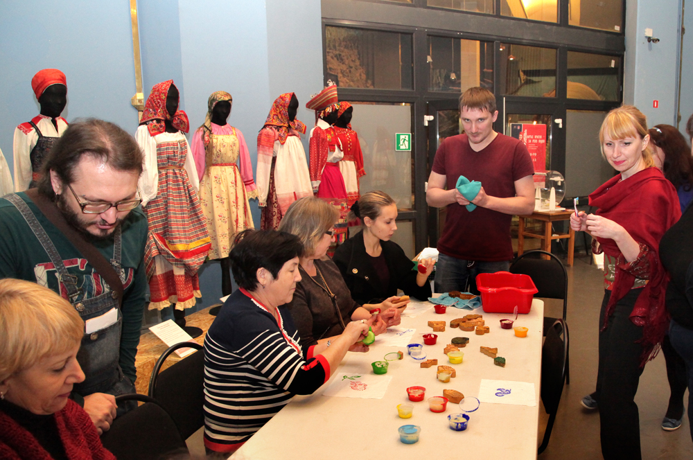 На выставке «Платье красно – за реку видно» прошла экскурсия «Искусство традиционного костюма» и мастер-класс «Набойка. Традиционное искусство декорирования ткани».