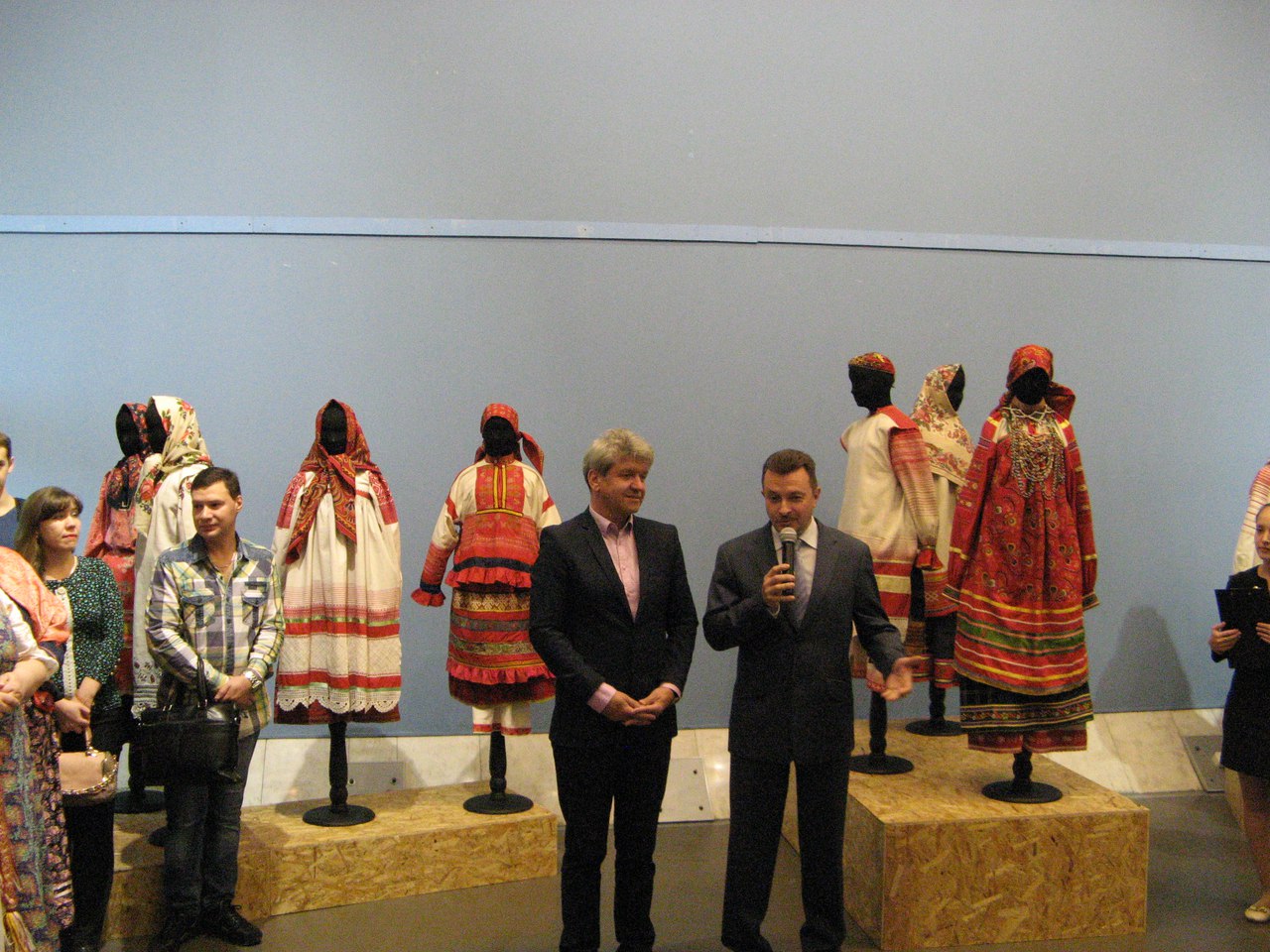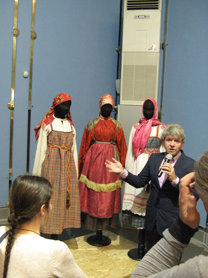 После открытия С. А. Глебушкин прочел лекцию о своей коллекции, рассказал об особенностях костюмных комплексов разных регионов России, дополняя рассказ историями о своем жизненном пути.