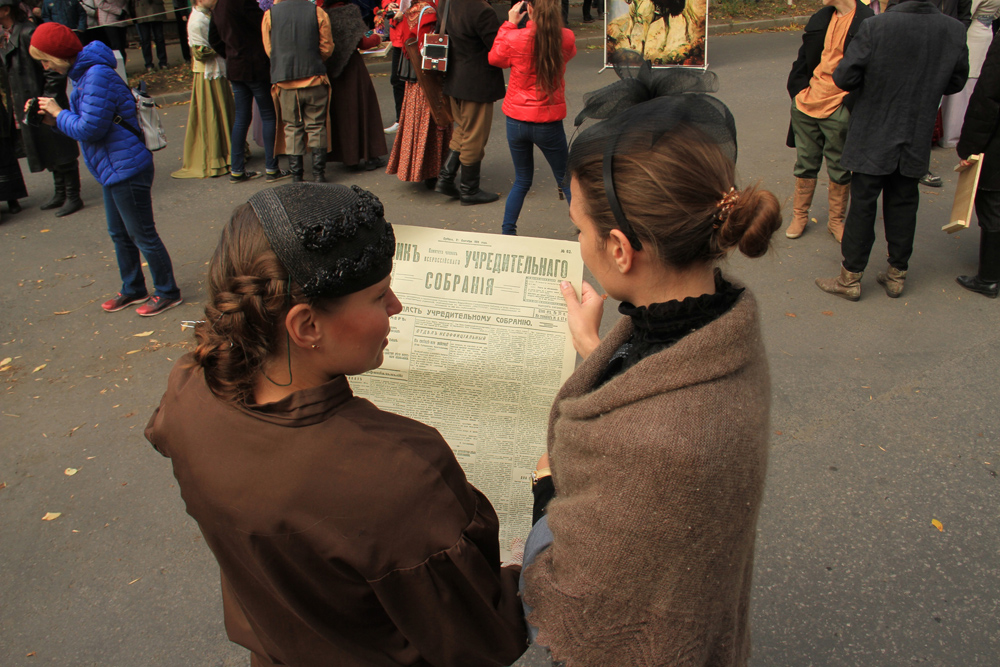 Далее действие перенеслось в здание музея им. П.В. Алабина, где посетители могли написать телеграмму пером и чернилами, а также посоревноваться в чтении текстов с дореволюционной орфографией, разучить танцы «белой эмиграции» с преподавателями школы танцевального перевоплощения «Феникс» и клуба историко-бытового танца «Свита». В тематической фотозоне, организованной представителями Самарского обкома КПРФ, любой желающий мог почувствовать себя в роли редактора большевистской газеты.