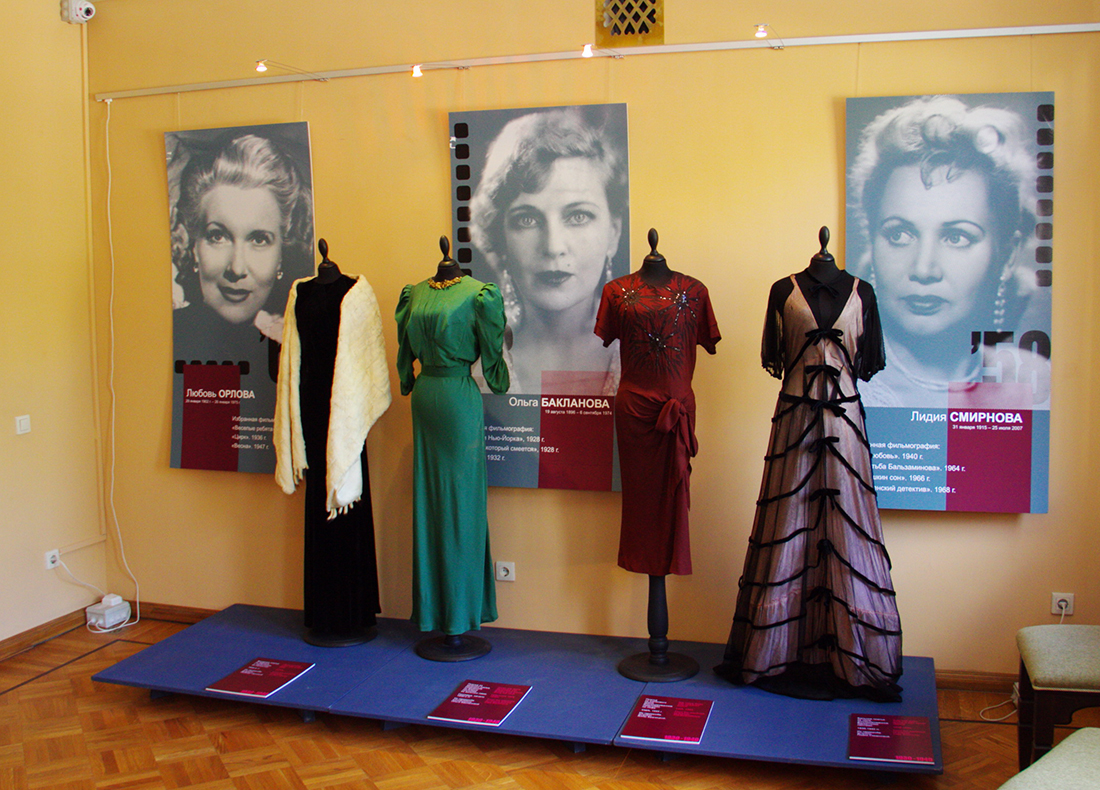 Экспозицию составляют более 40 вечерних и сценических нарядов, а также раритетные аксессуары, принадлежавшие звездам кино 1930-2000 годов, среди которых Алиса Коонен, Любовь Орлова, Лидия Смирнова, Клара Лучко, Наталья Фатеева, Майя Плисецкая, Анастасия Вертинская, Людмила Целиковская, Татьяна Шмыга, Алиса Фрейндлих, Наталья Селезнёва и Людмила Гурченко.