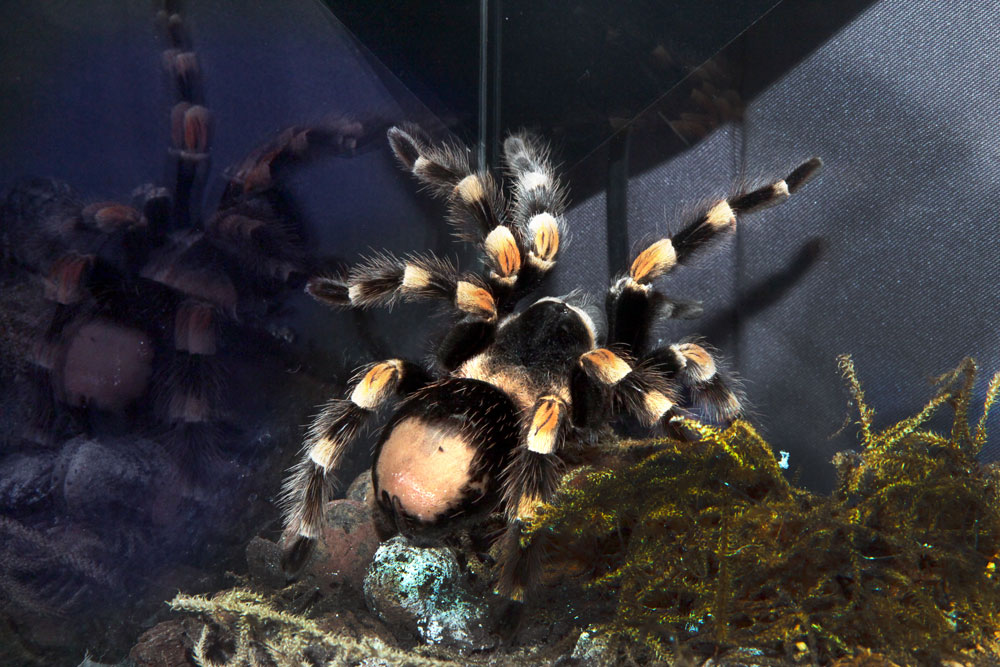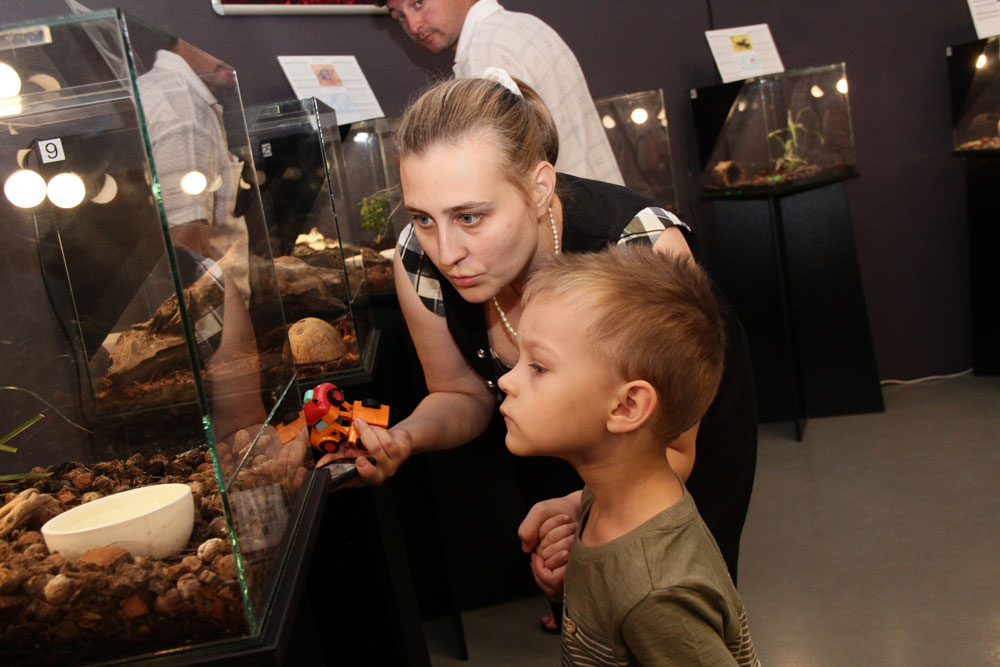 Закрытые стеклянные террариумы обеспечивают безопасность и позволяют осуществлять фото- и видеосъемку более 40 представленных живых особей на близком расстоянии.