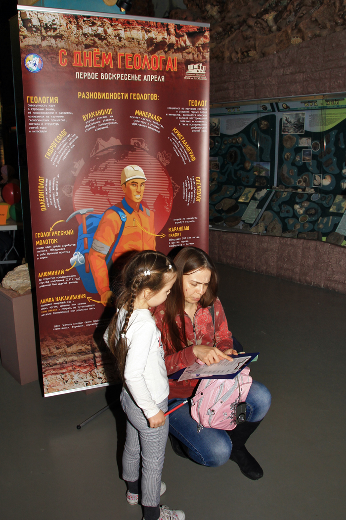 31 марта 2018 г. СОИКМ им. П.В. Алабина отметил традиционный День геолога большим музейным геологическим праздником «Юные геологи». Музей вновь подарил семейным посетителям возможность стать гостем на долгожданном мероприятии. День геолога - профессиональный праздник, учрежденный Указом Президиума Верховного Совета СССР от 31 марта 1966 г. в ознаменование заслуг советских геологов в создании минерально-сырьевой базы страны. Праздник приходится на 1-ое воскресенье весеннего месяца апреля, что связано с началом подготовки к летним работам и сборами в экспедиции.