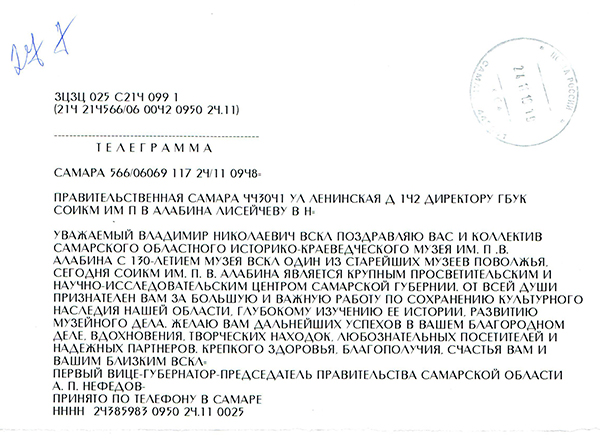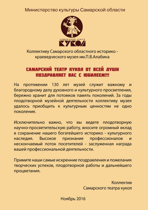 В адрес дирекции СОИКМ им.П.В.Алабина начали приходить поздравления от коллег и партнеров с добрыми пожеланиями и словами благодарности.